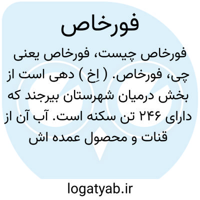 فورخاص. ( اِخ ) دهی است از بخش درمیان شهرستان بیرجند که دارای 246 تن سکنه است. آب آن از قنات و محصول عمده اش غله و بنشن است. ( از فرهنگ جغرافیایی ایران ج 9 ).