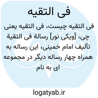 [ویکی نور] رسالة فی التقیة تألیف امام خمینى، این رساله به همراه چهار رساله دیگر در مجموعه ای به نام الرسائل (امام خمینی) به چاپ رسیده است.