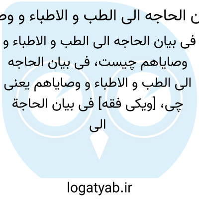 [ویکی فقه] فی بیان الحاجة الی الطب و الاطباء و وصایاهم (کتاب). کتاب«فی بیان الحاجة الی الطب و الاطباء و وصایاهم» تالیف قطب الدین محمود بن مسعود شیرازی از جمله نگاشته هایی است که پیرامون جایگاه علم طب و ارزش آن و کلیاتی در اخلاق پزشکی به رشته تحریر در آمده است.