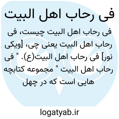 [ویکی نور] فی رحاب اهل البیت(ع). " فی رحاب اهل البیت " مجموعه کتابچه هایی است که در چهل مجلد موضوعات مختلف کلامی، فقهی و احیاناً تاریخی و قرآنی را مورد بررسی قرار داده است. سید عبدالرحیم موسوی و یک گروه تحقیقی تدوین و تنظیم آن را به انجام رسانده اند.