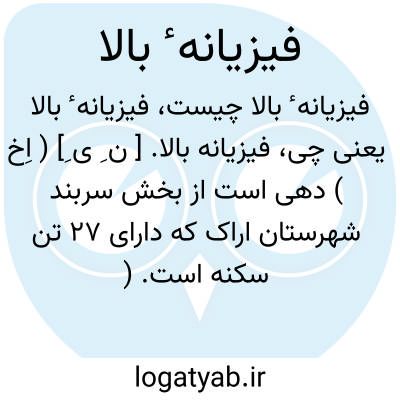 فیزیانه بالا. [ ن ِ ی ِ] ( اِخ ) دهی است از بخش سربند شهرستان اراک که دارای 27 تن سکنه است. ( از فرهنگ جغرافیایی ایران ج 2 ).