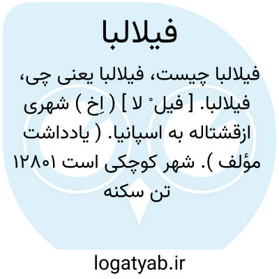 فیلالبا. [ فیل ْ لا ] ( اِخ ) شهری ازقشتاله به اسپانیا. ( یادداشت مؤلف ). شهر کوچکی است 12801 تن سکنه دارد. ( از فرهنگ جغرافیایی وبستر ).