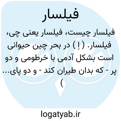 لغت نامه دهخدا فیلسار. ( اِ ) در بحر چین حیوانی است بشکل آدمی با خرطومی و دو پر - که بدان طیران کند - و دو پای... ( یادداشت مؤلف از نزهة القلوب ).