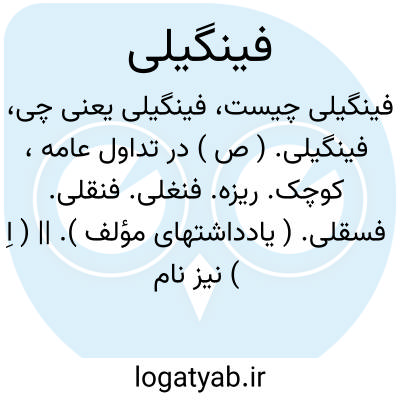 فینگیلی. ( ص ) در تداول عامه، کوچک. ریزه. فنغلی. فنقلی. فسقلی. ( یادداشتهای مؤلف ). || ( اِ ) نیز نام کوچکترین ریگ است از سه ریگ، که در بازی یکی از آنها را در دست پنهان کنند و از دیگری پرسند: گاو، گوساله یا فینگیلی ؟ یعنی: کدام سنگ در دست من است ؟ ( یادداشتهای مؤلف ).