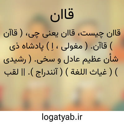 ( قا آن ) ( اسم ) ۱ - شاهنشاه پادشاه بزرگ: اگتای قا آن منگوقا آن ۲ - اگتای قا آن.
