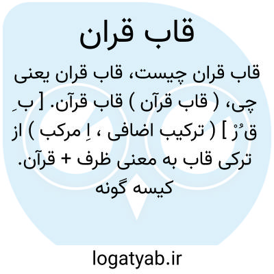 ( قاب قرآن ) قاب قرآن. [ ب ِ ق ُرْ ] ( ترکیب اضافی، اِ مرکب ) از ترکی قاب به معنی ظرف + قرآن. کیسه گونه ای به قطع قرآن که قرآن را در وی جای دهند. پوششی از جامه یا چرم که قرآن را در آن جای میدهند.