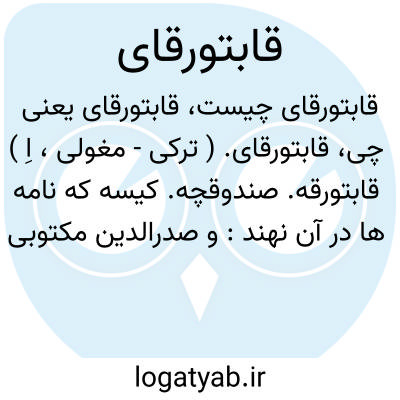 قابتورقای. ( ترکی - مغولی، اِ ) قابتورقه. صندوقچه. کیسه که نامه ها در آن نهند: و صدرالدین مکتوبی از امیر نوروز به حاجی نارین نوشت در آن باب و پیش او رفت و او را کاسه گرفت و چنانکه واقف نگشت در قا0بتورقای او گذاشت. ( تاریخ غازان ص 109 ). آن بروات در دست ایشان کهنه شدی، طمع از آن منقطع کرده سالها در قابتورقه و خریطه ایشان بودی. ( تاریخ غازان ص 244 ).