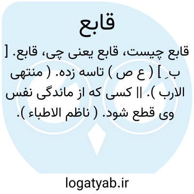 لغت نامه دهخدا قابع. [ ب ِ ] ( ع ص ) تاسه زده. ( منتهی الارب ). || کسی که از ماندگی نفس وی قطع شود. ( ناظم الاطباء ).