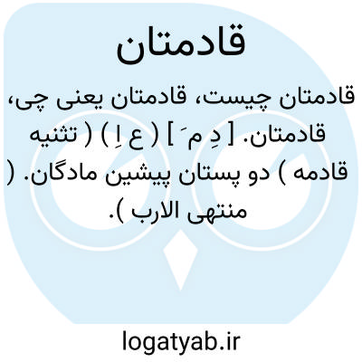 قادمتان. [ دِ م َ ] ( ع اِ ) ( تثنیه قادمه ) دو پستان پیشین مادگان. ( منتهی الارب ).