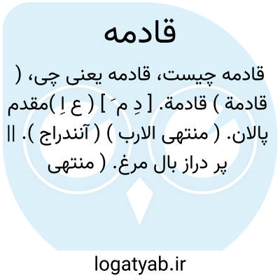 ( اسم ) ۱ - مونث قادم ۲ - مقدم پالان ۳ - پر دراز بال مرغ جمع: قوادم و قدامی آبی است مر بنی ضبه را