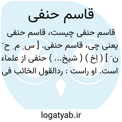 لغت نامه دهخدا قاسم حنفی. [ س ِ م ِ ح َ ن َ ] ( اِخ ) ( شیخ... ) حنفی از علماء است. او راست: ردالقول الخائب فی القضاء علی الغائب. ( معجم المطبوعات ج 2 ستون 1482 ).