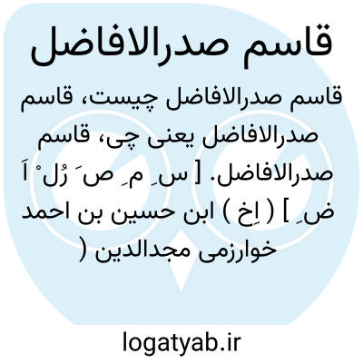 قاسم صدرالافاضل. [ س ِ م ِ ص َ رُل ْ اَ ض ِ ] ( اِخ ) ابن حسین بن احمد خوارزمی مجدالدین ( 555 -617 هَ.ق. ). از مردم خوارزم و یکی از دانشمندان ادب عرب و از فقیهان حنفی است که در ایلغار تاتار کشته شده است. تألیفاتی دارد. از اوست: 1- شرح المفصل للزمخشری در سه مجلد. 2- ضرام السقط در شرح سقط الزندمعری. 3- التوضیح در شرح مقامات. 4- بدایع الملح. 5- الزوایا و الخبایا در نحو. 6- السر در اعراب. 7- المحصل فی البیان. 8- شرح بر تاریخ یمینی محمدبن عبدالجبار عتبی. و شعرهائی نیز دارد. رجوع به الاعلام ابن قاضی شهبه خطی و الفوائد البهیه ص 153 و بغیة الوعاة ص 376 و شروح سقط الزند، مقدمة و الجواهر المضیئة ج 1ص 410 و الاعلام زرکلی چ 2 ج 6 ص 8 و کشف الظنون چ 1943 م. ج 2 ستون 1615 و 1789 و 1775 و 3052 و 3992 شود.
