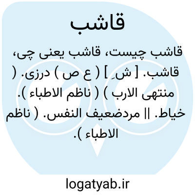لغت نامه دهخدا قاشب. [ ش ِ ] ( ع ص ) درزی. ( منتهی الارب ) ( ناظم الاطباء ). خیاط. || مردضعیف النفس. ( ناظم الاطباء ). سست نفس. ( منتهی الارب ).