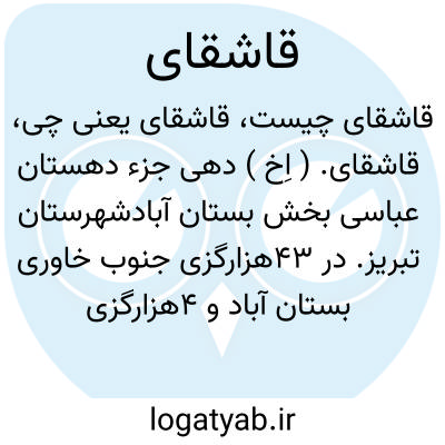 قاشقای. ( اِخ ) دهی جزء دهستان عباسی بخش بستان آبادشهرستان تبریز. در 43هزارگزی جنوب خاوری بستان آباد و 4هزارگزی شوسه میانه به تبریز و در جلگه واقع و معتدل است. 242 تن سکنه دارد. آب آن از چشمه و محصول آن غلات درخت تبریزی و شغل اهالی زراعت و گله داری است. راه مالرو دارد. ( از فرهنگ جغرافیائی ایران ج 4 ).