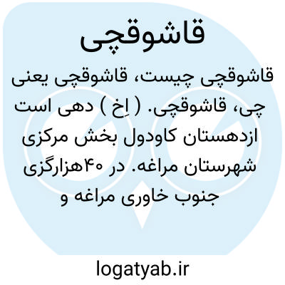 قاشوقچی. ( اِخ ) دهی است ازدهستان کاودول بخش مرکزی شهرستان مراغه. در 40هزارگزی جنوب خاوری مراغه و 14000گزی خاور شوسه مراغه به میاندوآب واقع و کوهستانی و معتدل است. 141 تن سکنه دارد. آب آن از رودخانه لیلان و محصول آن غلات، نخودو شغل اهالی زراعت و صنایع دستی آنان جاجیم بافی است. راه مالرو دارد. ( از فرهنگ جغرافیائی ایران ج 4 ).