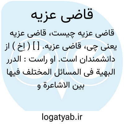 قاضی عزیه. [ ] ( اِخ ) از دانشمندان است. او راست: الدرر البهیة فی المسائل المختلف فیها بین الاشاعرة و الماتریدیة چ مصر. ( معجم المطبوعات ج 2 ستون 1489 ).