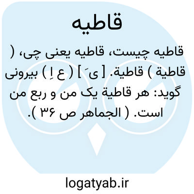 لغت نامه دهخدا ( قاطیة ) قاطیة. [ ی َ ] ( ع اِ ) بیرونی گوید: هر قاطیة یک من و ربع من است. ( الجماهر ص 36 ).