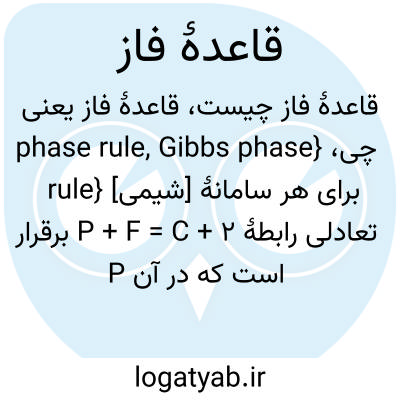 {phase rule, Gibbs phase rule} [شیمی] برای هر سامانۀ تعادلی رابطۀ P + F = C + 2 برقرار است که در آن P تعداد فازهای مجزا و C تعداد اجزا و F درجۀ آزادی سامانه باشد
