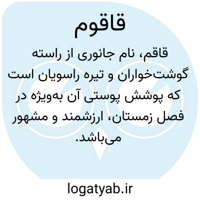 قاقُم، واژهای است که در متون کهن فارسی و فرهنگهای لغت بهکار رفته و بهعنوان مترادفی برای واژهٔ قاقم شناخته میشود. این واژه در منابع لغوی، اغلب با اشاره به همان معنای اصلی قاقم تعریف شده و برای دستیابی به تعریف دقیقتر، به مدخل قاقم ارجاع داده شده است. قاقم، نام جانوری از راستهٔ گوشتخواران و تیرهٔ راسویان است که پوشش پوستی آن بهویژه در فصل زمستان، ارزشمند و مشهور میباشد. این حیوان که در مناطق سردسیر شمالی زیست میکند، دارای پوستی نرم و به رنگ سفید یکدست است که از دیرباز در صنعت خزکاری مورد توجه بوده است. بنابراین، واژهٔ قاقُم شکل دیگری از همان واژهٔ رایجتر قاقم محسوب میشود و برای دریافت اطلاعات جامعتر در مورد این جانور، ویژگیهای زیستی و کاربردهای پوست آن، باید به مدخل اصلی قاقم در کتب مرجع مراجعه نمود. این رویکرد در فرهنگنویسی، برای پرهیز از تکرار و تمرکز اطلاعات در یک مدخل اصلی مرسوم است.