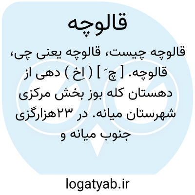 قالوچه. [ چ َ ] ( اِخ ) دهی از دهستان کله بوز بخش مرکزی شهرستان میانه. در 23هزارگزی جنوب میانه و 14هزارگزی شوسه میانه به زنجان واقع و موقع جغرافیائی آن کوهستانی و معتدل است. 140 تن سکنه دارد. آب آن از چشمه و محصول آن غلات و شغل اهالی زراعت و گله داری است.راه مالرو دارد. ( از فرهنگ جغرافیایی ایران ج 4 ).