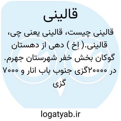 قالینی.( اِخ ) دهی از دهستان گوکان بخش خفر شهرستان جهرم. در 20000گزی جنوب باب انار و 7000 گزی جنوب راه فرعی خفر به گوکان واقع است. موقع جغرافیائی آن دامنه و گرمسیر و مالاریائی است. 460 تن سکنه دارد. آب آن از چشمه و محصولات آن غلات، برنج، خرما و مرکبات و شغل اهالی زراعت و باغداری و صنایع دستی آنان قالی بافی است.راه مالرو دارد. ( از فرهنگ جغرافیایی ایران ج 7 ).