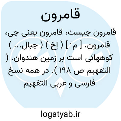 قامرون. [ م َ ] ( اِخ ) ( جبال... ) کوههائی است بر زمین هندوان. ( التفهیم ص 198 ). در همه نسخ فارسی و عربی التفهیم به همین شکل قامرون با نون و در کتاب تحقیق ماللهند ص 58 ( جبال قامرو ) بدون «ن » و در اصل سانسکریت این طور است Kamarupa. ( پاورقی التفهیم چ جلال همائی ص 198 ). ملکی است بر مشرق هندوستان پادشائی او را قامرون خوانند آنجا کرگ بسیار است و معدن های زر بسیار است و از او سنباده و عود تر خیزد نیک، صنف پادشائی قامرون است مندل شهری از آن و این هر دو شهر [ صنف و مندل ] بر کران دریا است. ( حدود العالم ). رجوع به کامرون شود.