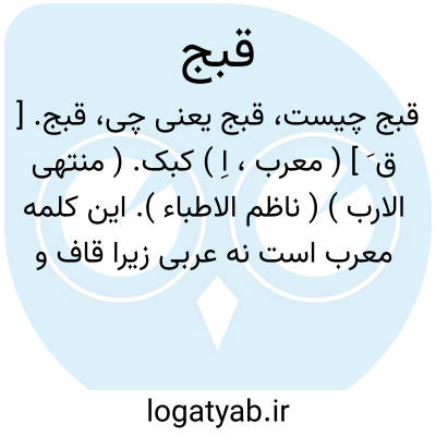 قبج. [ ق َ ] ( معرب، اِ ) کبک. ( منتهی الارب ) ( ناظم الاطباء ). این کلمه معرب است نه عربی زیرا قاف و جیم جمع نمیشوند در هیچ کلمه ای از کلام عرب. ( منتهی الارب ) ( ناظم الاطباء ). به فارسی کبک و به ترکی ککلبک نامند در دوم گرم و خشک و کثیرالغذاء و سریعالهضم و مبهی و لطیف و مولد خون صالح و حابس اسهال وجهت فالج و لقوه و امراض بارده دماغی و جگر و معده و احشاء نافع و در مزاج محرور و در هوای گرم و با شراب مصدع و مورث خارش بدن و مصلحش سکنجبین و ترشیها و شربت یک مثقال، مغز سر او با نیم مثقال صندل جهت یرقان و یک مثقال جگر خام او جهت صرع و زهره او جهت تقویت و جلاء بصر و بیاض و شبکوری و جرب چشم و با مروارید و شکر بالسویه جهت جرب مجرب و ضماد او بر چشم با روغن زیتون بالسویه جهت نزول آب و سعوط او در اول هر ماه یک بار جهت قوه حافظه و رفع نسیان مفید و بیضه او که در سرکه عنصل پخته باشند جهت درد شکم و مغص و پخته او در غیر سرکه مورث فصاحت و صافی آواز و رافع سرفه و خام او با کندر مسمن بدن و اکتحال خون، خشک کرده او با زجاج سفید جهت جرب و ناخنه نافع و خاکستر پر او محلل اورام صلبه و طلای سرگین او رافع کلف و نمش است. ( تحفه حکیم مؤمن ). رجوع به کبک شود.