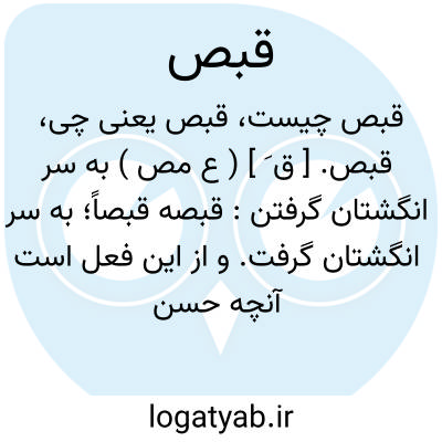 قبص. [ ق َ ] ( ع مص ) به سر انگشتان گرفتن: قبصه قبصاً؛ به سر انگشتان گرفت. و از این فعل است آنچه حسن قرائت کند: و قبصت قبصة من اثر الرسول. || پیش از سیری از نوشیدن بازداشتن کسی را. || برجستن گشن بر ماده. || در ازار در کردن بند ازار را. || کشیدن و سبک شدن اسب و جز آن. || شادمانی نمودن. ( منتهی الارب ).