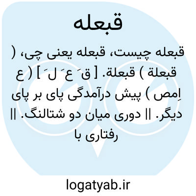 ( قبعلة ) قبعلة. [ ق َ ع َ ل َ ] ( ع اِمص ) پیش درآمدگی پای بر پای دیگر. || دوری میان دو شتالنگ. || رفتاری با سستی و ضعف. ( منتهی الارب ) ( ناظم الاطباء ) ( آنندراج ). || رفتاری که گویا خاک رابا قدم برمیدارد. ( از منتهی الارب ) ( ناظم الاطباء ).