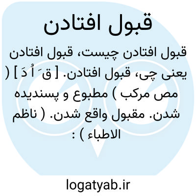 قبول افتادن. [ ق َ اُ دَ ] ( مص مرکب ) مطبوع و پسندیده شدن. مقبول واقع شدن. ( ناظم الاطباء ):