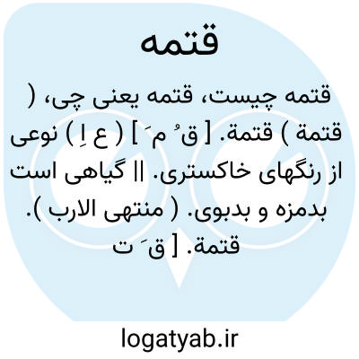 ( قتمة ) قتمة. [ ق ُ م َ ] ( ع اِ ) نوعی از رنگهای خاکستری. || گیاهی است بدمزه و بدبوی. ( منتهی الارب ).