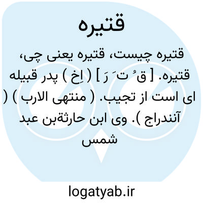 قتیره. [ ق ُ ت َ رَ ] ( اِخ ) پدر قبیله ای است از تجیب. ( منتهی الارب ) ( آنندراج ). وی ابن حارثةبن عبد شمس بن معاویةبن جعفربن اسامةبن سعدبن اشرس بن شیب بن سکون بطنی است از تجیب. ( لباب الانساب ).