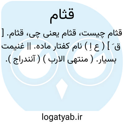 قثام. [ ق َ ] ( ع اِ ) نام کفتار ماده. || غنیمت بسیار. ( منتهی الارب ) ( آنندراج ).