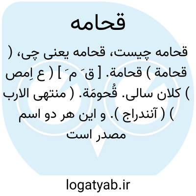 ( قحامة ) قحامة. [ ق َ م َ ] ( ع اِمص ) کلان سالی. قُحومَة. ( منتهی الارب ) ( آنندراج ). و این هر دو اسم مصدر است بدون فعل. ( آنندراج ).