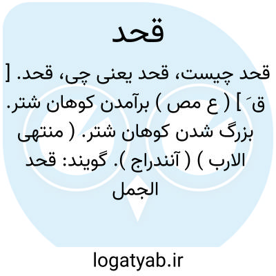 قحد. [ ق َ ] ( ع مص ) برآمدن کوهان شتر. بزرگ شدن کوهان شتر. ( منتهی الارب ) ( آنندراج ). گویند: قحد الجمل قحداً؛ برآمد کوهان وی و بزرگ شد. ( منتهی الارب ).