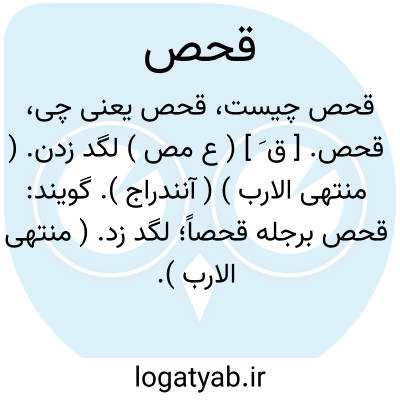 قحص. [ ق َ ] ( ع مص ) لگد زدن. ( منتهی الارب ) ( آنندراج ). گویند: قحص برجله قحصاً؛ لگد زد. ( منتهی الارب ). || خانه روفتن. || شتاب گذشتن. || دویدن. ( منتهی الارب ) ( آنندراج ). گویند. سبقنی قحصاً؛ ای عدواً. ( منتهی الارب ).