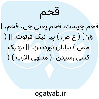 قحم. [ ق َ ] ( ع ص ) پیر نیک فرتوت. || ( مص ) بیابان نوردیدن. || نزدیک کسی رسیدن. ( منتهی الارب ) ( آنندراج ).