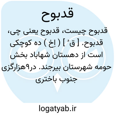 قدبوح. [ ق ُ ] ( اِخ ) ده کوچکی است از دهستان شهاباد بخش حومه شهرستان بیرجند. در9هزارگزی جنوب باختری بیرجند واقع و موقع جغرافیایی آن دامنه و معتدل است. 23 تن سکنه دارد. آب آن از قنات، محصول آنجا غلات، ابریشم، شغل اهالی زراعت است وراه مالرو دارد. ( از فرهنگ جغرافیایی ایران ج 9 ).