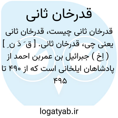 قدرخان ثانی. [ ق َ دَ ن ِ ] ( اِخ ) جبرائیل بن عمربن احمد از پادشاهان ایلخانی است که از 490 تا 495 در ماوراءالنهر حکومت کرده و در شعبان سال 495 هَ. ق. وفات یافته است. ( معجم الانساب چ زامباور ج 6 ص 313 ). رجوع به قدرخان شود.