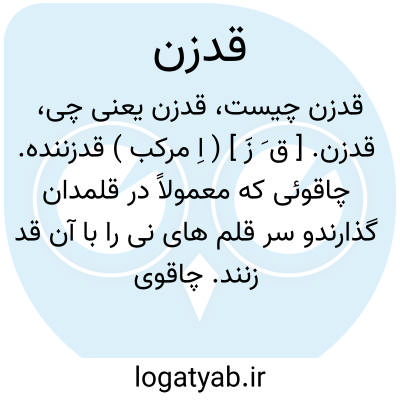 قدزن. [ ق َ زَ ] ( اِ مرکب ) قدزننده. چاقوئی که معمولاً در قلمدان گذارندو سر قلم های نی را با آن قد زنند. چاقوی قلم تراش.