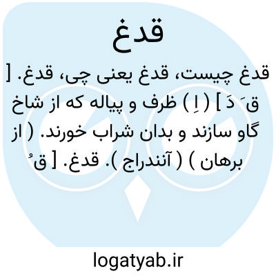 قدغ. [ ق َ دَ ] ( اِ ) ظرف و پیاله که از شاخ گاو سازند و بدان شراب خورند. ( از برهان ) ( آنندراج ).