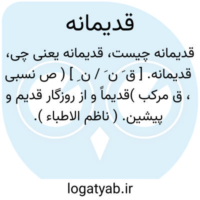 لغت نامه دهخدا قدیمانه. [ ق َ ن َ / ن ِ ] ( ص نسبی، ق مرکب )قدیماً و از روزگار قدیم و پیشین. ( ناظم الاطباء ).