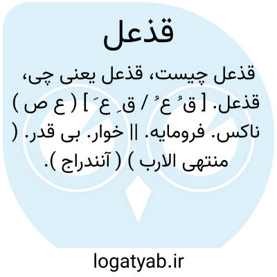 لغت نامه دهخدا قذعل. [ ق ُ ع ُ / ق ِ ع َ ] ( ع ص ) ناکس. فرومایه. || خوار. بی قدر. ( منتهی الارب ) ( آنندراج ).