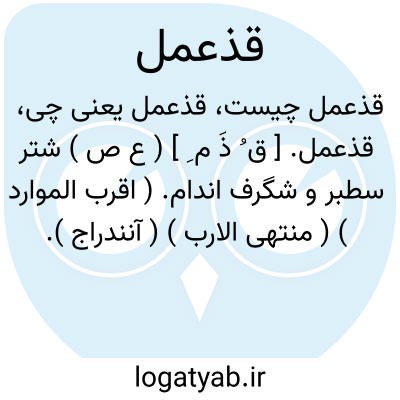 لغت نامه دهخدا قذعمل. [ ق ُ ذَ م ِ ] ( ع ص ) شتر سطبر و شگرف اندام. ( اقرب الموارد ) ( منتهی الارب ) ( آنندراج ).