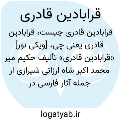 [ویکی فقه] قرابادین قادری (کتاب). «قرابادین قادری» تالیف حکیم میر محمد اکبر شاه ارزانی شیرازی از جمله آثار فارسی در طب سنتی است. مؤلف در خطبه آغازین کتاب انگیزه اش از تالیف کتاب را نگارش اثری مفید با مطالبی جدید دانسته است.