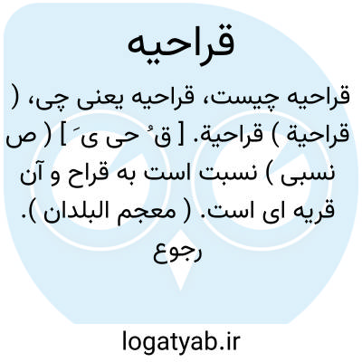 ( قراحیة ) قراحیة. [ ق ُ حی ی َ ] ( ص نسبی ) نسبت است به قراح و آن قریه ای است. ( معجم البلدان ). رجوع به قراح شود.