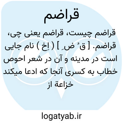 قراضم. [ ق ُ ض ِ ] ( اِخ ) نام جایی است در مدینه و آن در شعر احوص خطاب به کسری آنجا که ادعا میکند خزاعة از اولاد نضربن کنانه هستند آمده است: