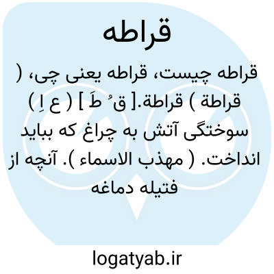 ( قراطة ) قراطة.[ ق ُ طَ ] ( ع اِ ) سوختگی آتش به چراغ که بباید انداخت. ( مهذب الاسماء ). آنچه از فتیله دماغه چراغ بریده شود هنگامی که از جرم پوشیده شود. || آنچه از کناره فتیله سوخته شود. ( از اقرب الموارد ).