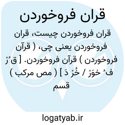 ( قرآن فروخوردن ) قرآن فروخوردن. [ ق ُرْ ف ُ خوَرْ / خُرْ دَ ] ( مص مرکب ) قسم خوردن به مصحف. ( مجموعه مترادفات ):