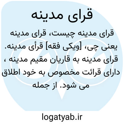 [ویکی فقه] قرأی مدینه. قرای مدینه به قاریان مقیم مدینه، دارای قرائت مخصوص به خود اطلاق می شود.